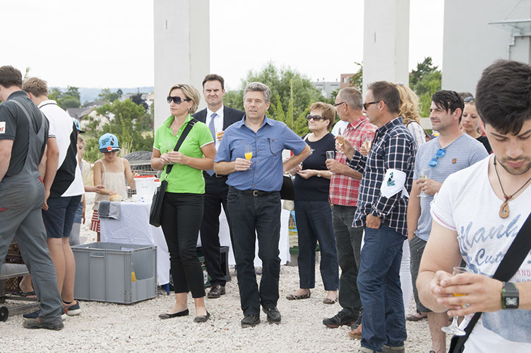 Ende Juni wurde mit dem Richtfest ein erstes Zeichen gesetzt. Mit der Stadt, verschiedenen Partnern und Freunden wurde auf ein erfolgreiches Projekt angestoßen. Mit gegrillten Würstchen und selbst gemachtem Eis war an diesem Tag für jeden etwas dabei. Sogar die ersten Fahrversuche auf unserer mobilen Rampe wurden getätigt. In diesem Sinne noch einmal ein herzliches Dankeschön an alle Beteiligten!