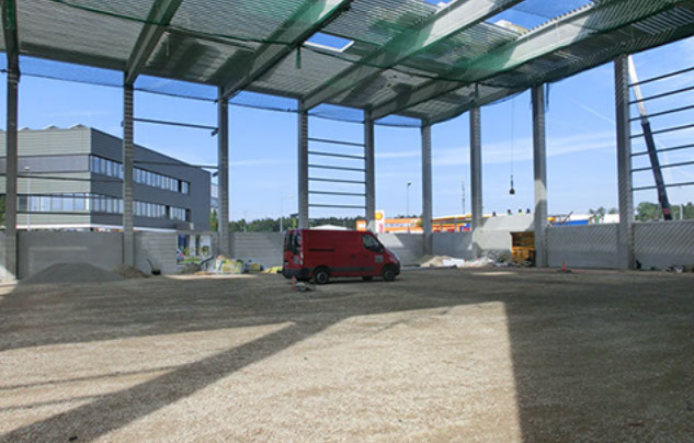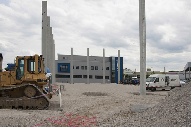 Juni 2014: Das Gelände ist geebnet und die ersten Stützen stehen.
