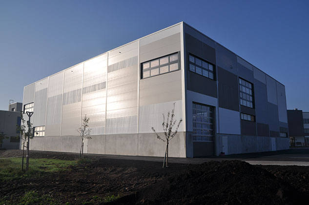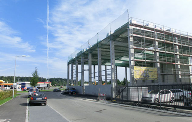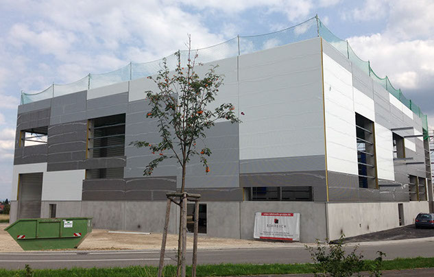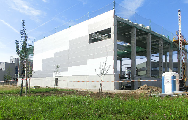 September 2014: Die Fassade ist fertig und die Fenster sind drin.