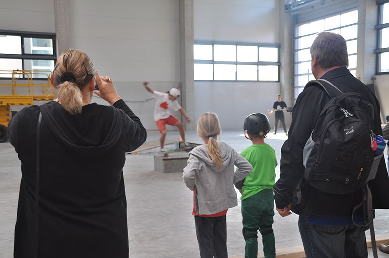 Ende Juni wurde mit dem Richtfest ein erstes Zeichen gesetzt. Mit der Stadt, verschiedenen Partnern und Freunden wurde auf ein erfolgreiches Projekt angestoßen. Mit gegrillten Würstchen und selbst gemachtem Eis war an diesem Tag für jeden etwas dabei. Sogar die ersten Fahrversuche auf unserer mobilen Rampe wurden getätigt. In diesem Sinne noch einmal ein herzliches Dankeschön an alle Beteiligten!