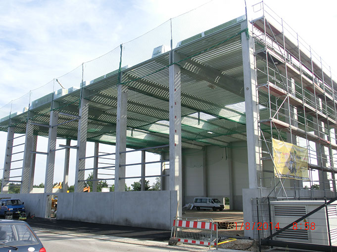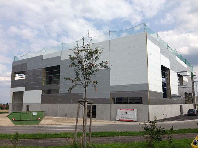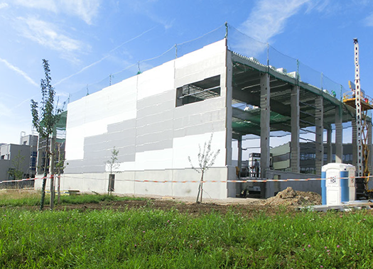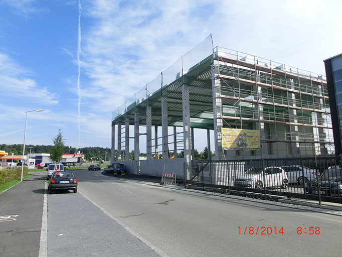 September 2014: Die Fassade ist fertig und die Fenster sind drin.