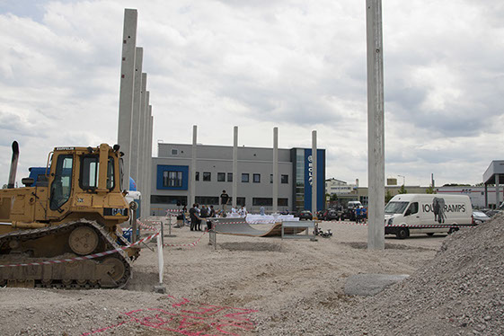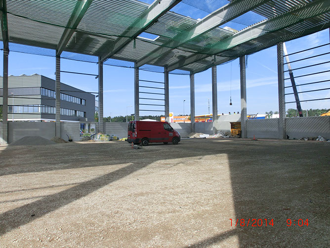 Juni 2014: Das Gelände ist geebnet und die ersten Stützen stehen.